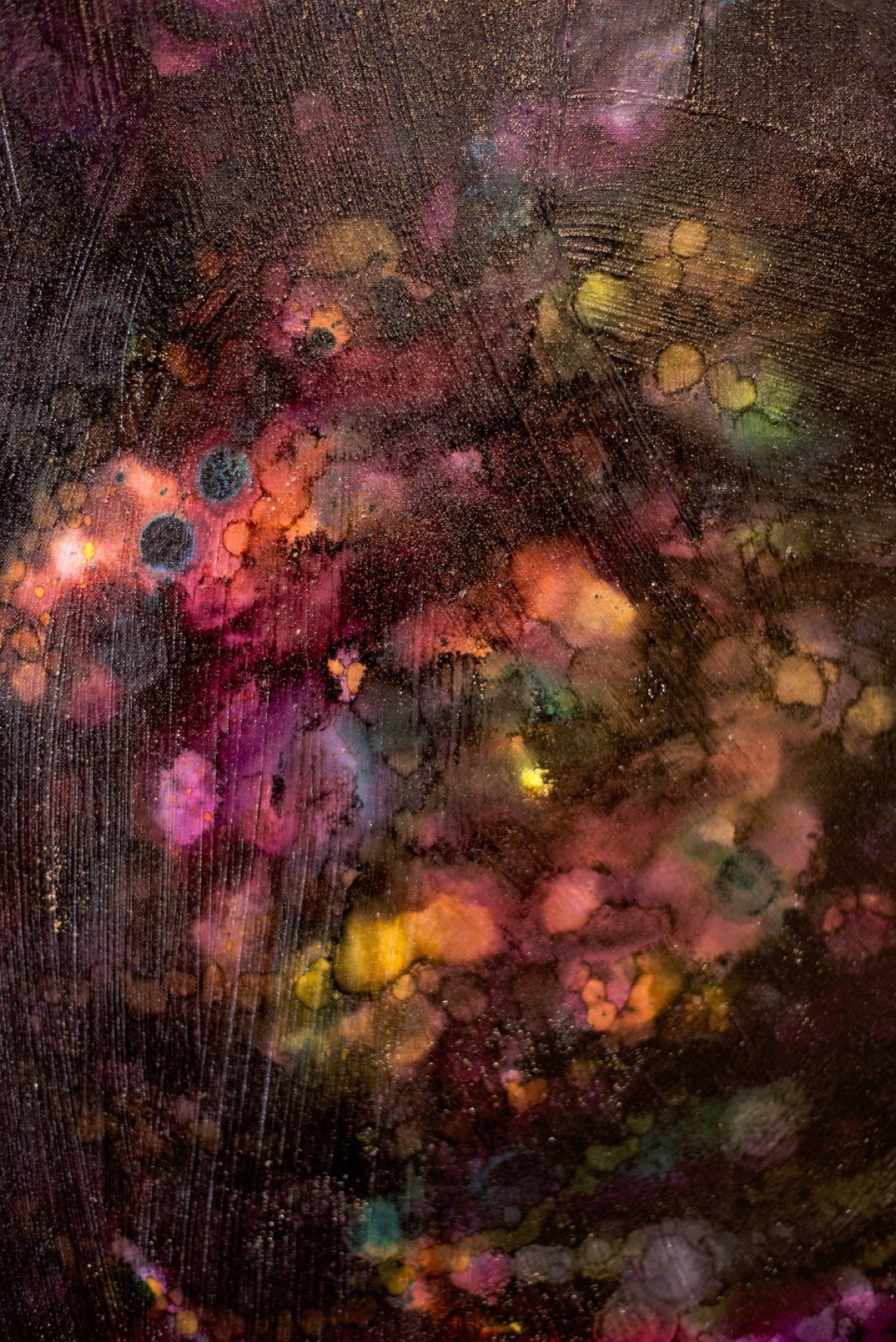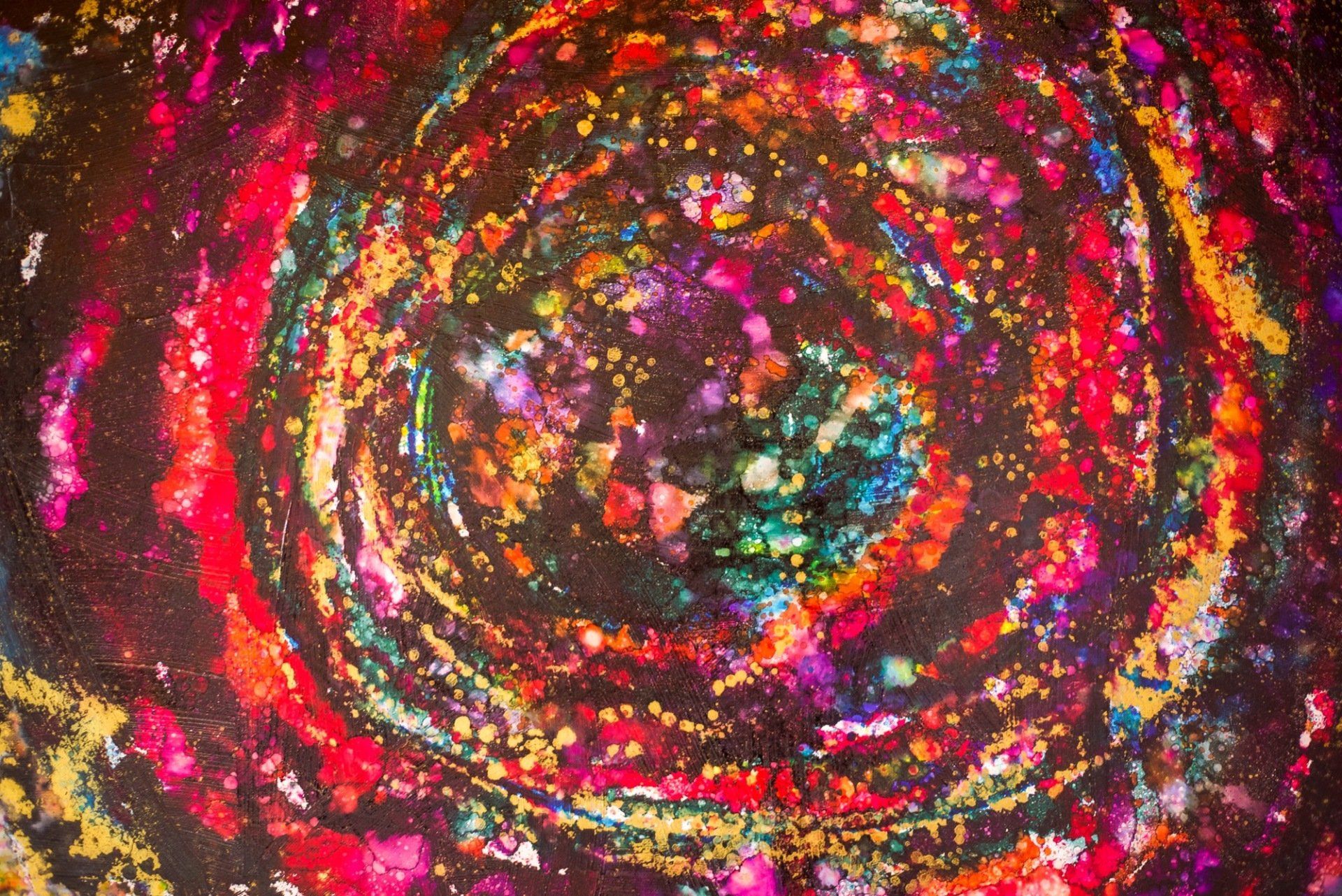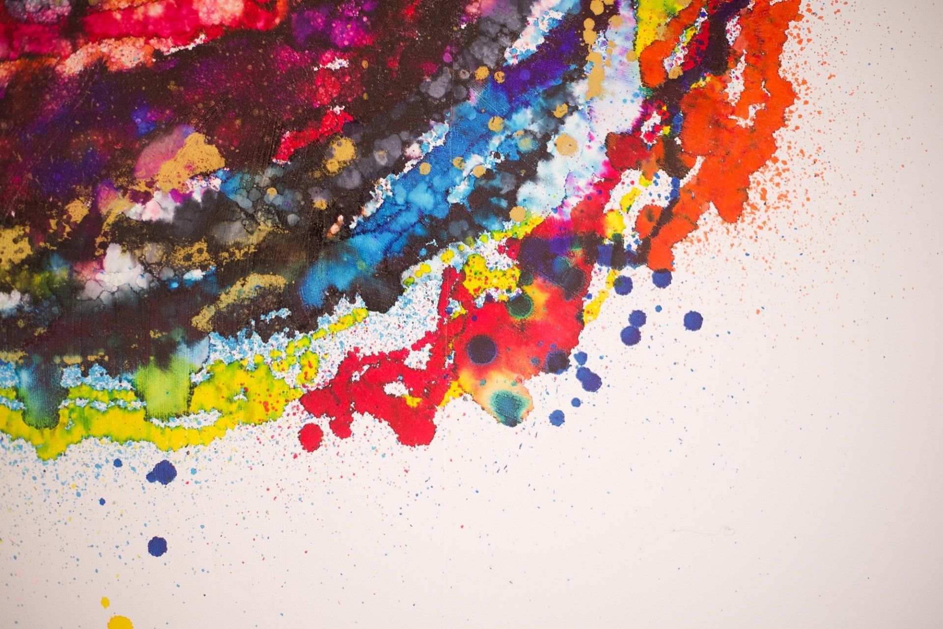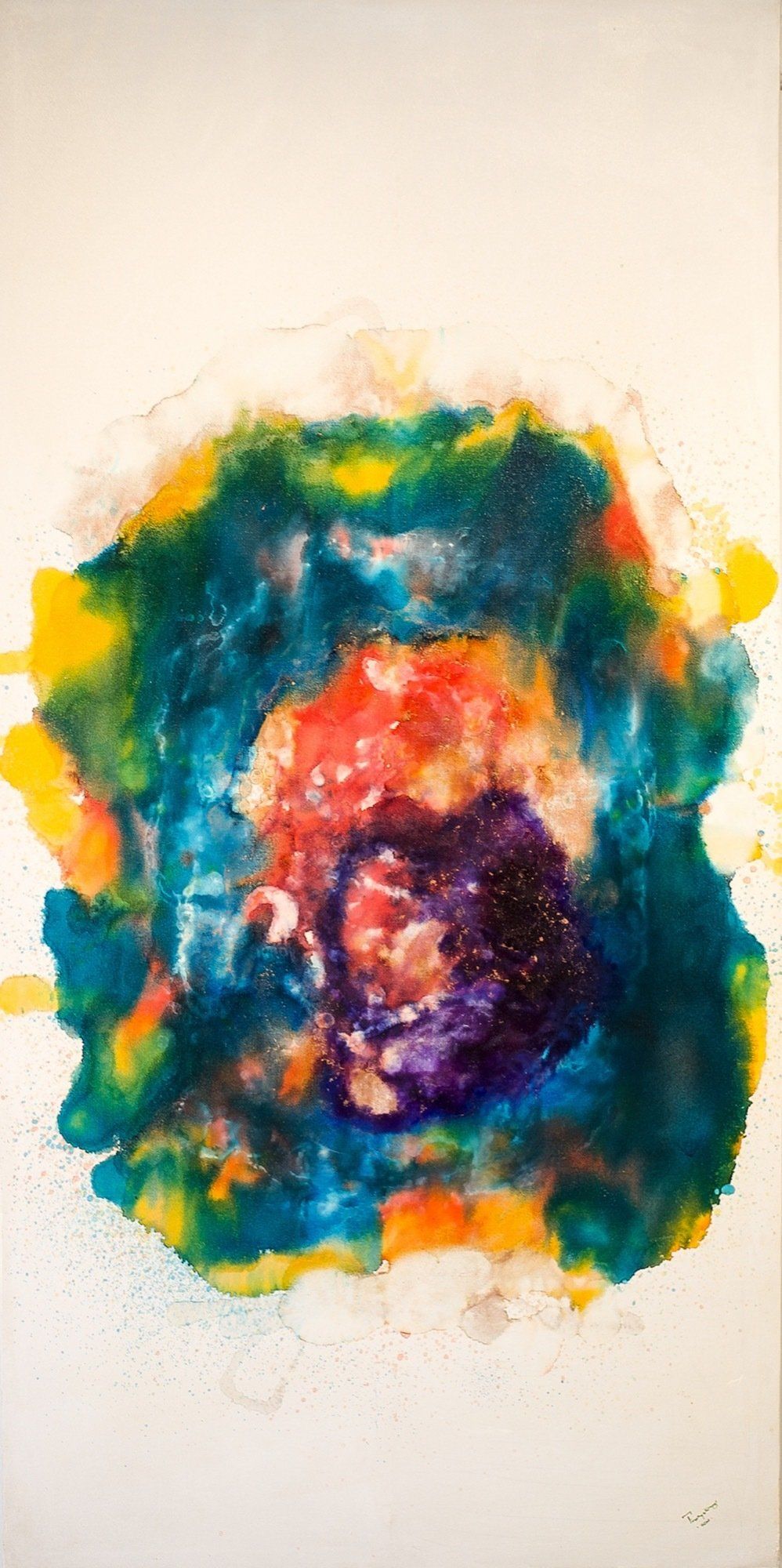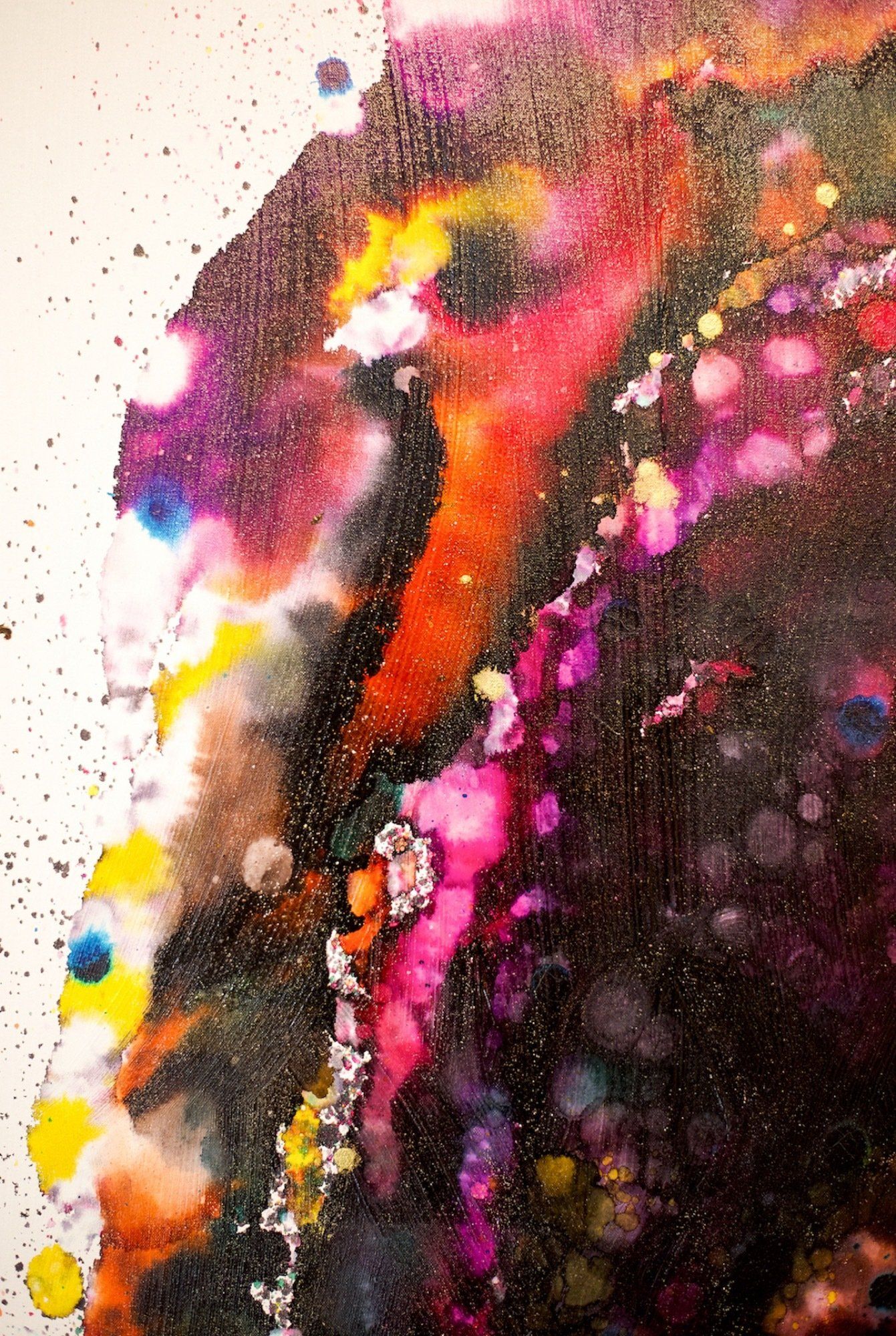 While commonly said to resemble aerial landscapes, Timothy’s pieces convey the wide-ranging emotions we all go through in our day-to-day lives. In turn, like the Rorschach’s tests to which they have also been compared, this art is designed elicit a multitude of interpretations, all of which the artist is always keen to discover. A mixed media artist, Timothy chiefly employs acrylic and metallic paints, making use of complex layering and hallmarked by intense, liberal use of colour and a high degree of experimentation - particularly with with texture- that the artist deems central to his growth.